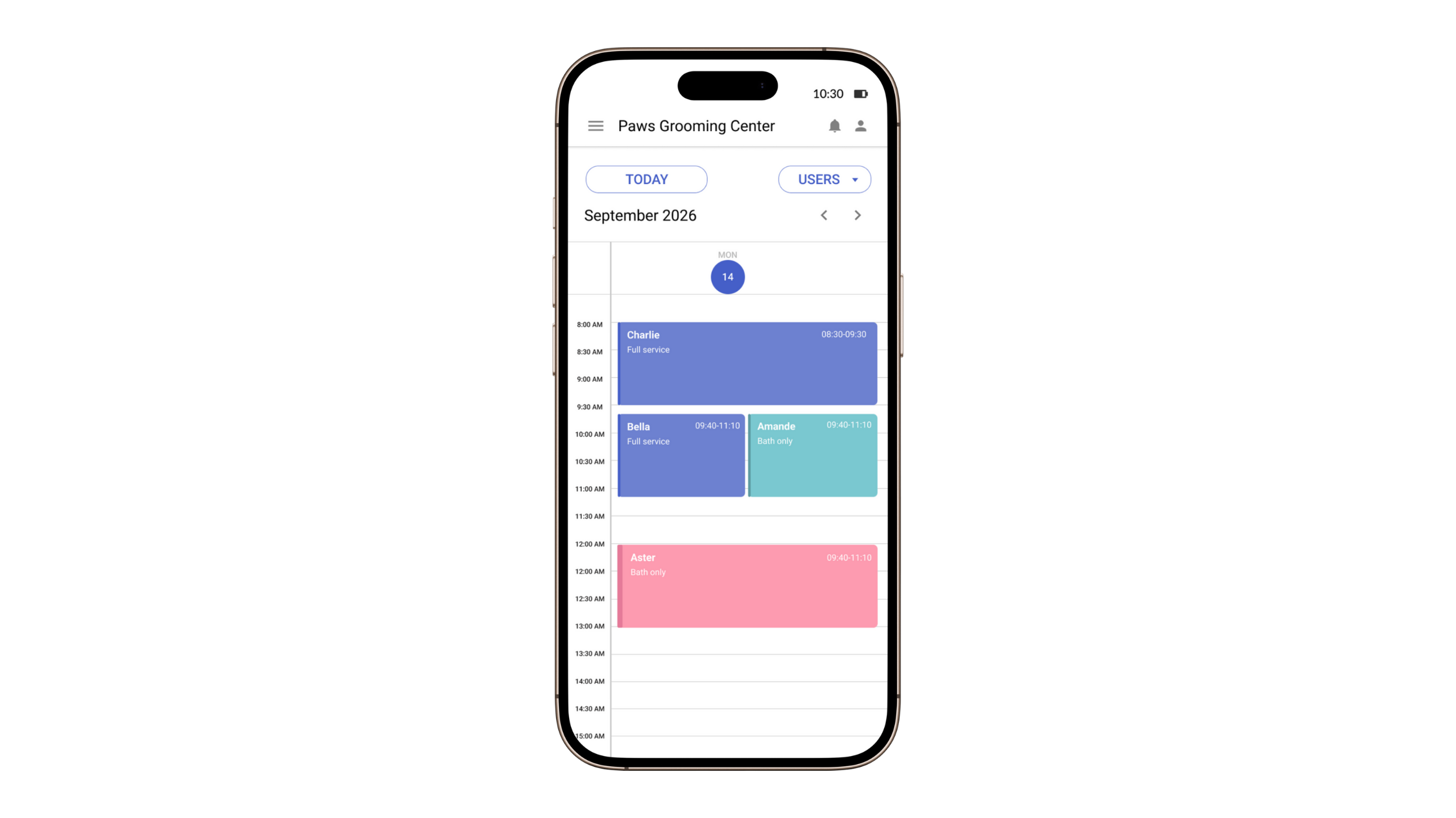 Keep track of every pet and its history: breed, habits, products used, previous treatments, photos, and groomer notes.